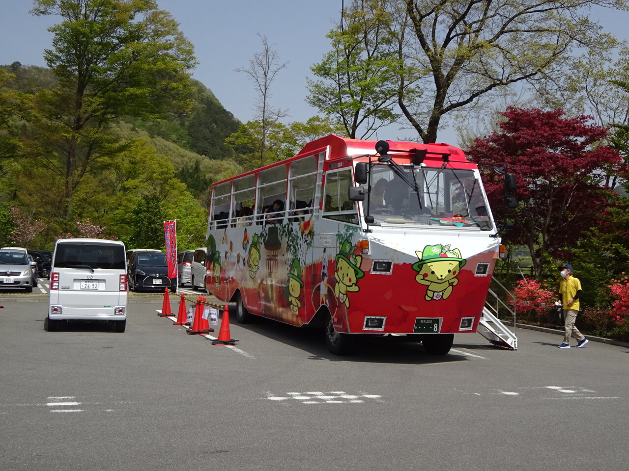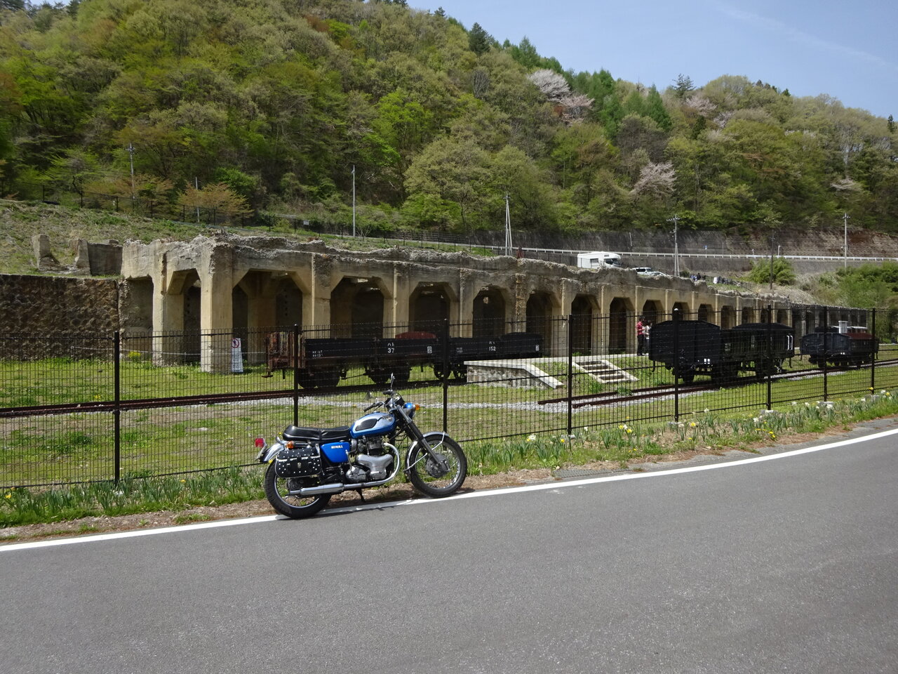 2021年05月04日 原点ツー下見ツアー 薫風の快晴の下、今日は原点ツーの下見とTIMEチェック諸々自宅は8:30出発おぎのやまでは約1時間弱の43㌔缶コして直ぐに出発新緑の旧道でしたが、こんな日に限って車が邪魔!!気の利くドライバーだったら道を譲ってくれるが・・マイペースで走るドライバーも・・ストレスが!!軽井沢(旧軽)は人影もまばら・・時間が早い??コロナか?白糸の滝ハイウェー・・¥200払う価値は有りますよん何度も言う様ですが・・此の道はアタシが高校生だった頃はまだダートそれでも有料だったんだよね”(⌒▽⌒)アハハ!快晴の浅間山がくっきりお顔を出してます、珍しい現象かな?兵どもの夢の跡はコースから外せません!!浅間牧場に着いたのですが、記念館は解らず・・スマホで調べたのですが・・入場料¥500なのでパス!アハハ(^^♪牧場の上の展望台で記念撮影・・¥0パノラマラインは南コースから侵入北ルート愛妻の丘経由で一路”草津方面へ・・今回の目玉は次!!草津から中之条までの抜け道・・対向車はたったの1台(゚Д゚;)此処は旧太子駅のホッパー・・古めかしい貨車が沢山・・T中さんが喜びそう^^もう行ったかな?新聞では何回か紹介されてましたので一度は訪れて見たかった帰りは八ッ場ダムで放水タイム・・水陸両用バスが大人気・・満員途中の蕎麦屋で、ざるそばを手繰ってたら・・古めかしいFLHのお兄さんに声掛けられて榛名まで御一緒することに!!(^^♪終わり・・